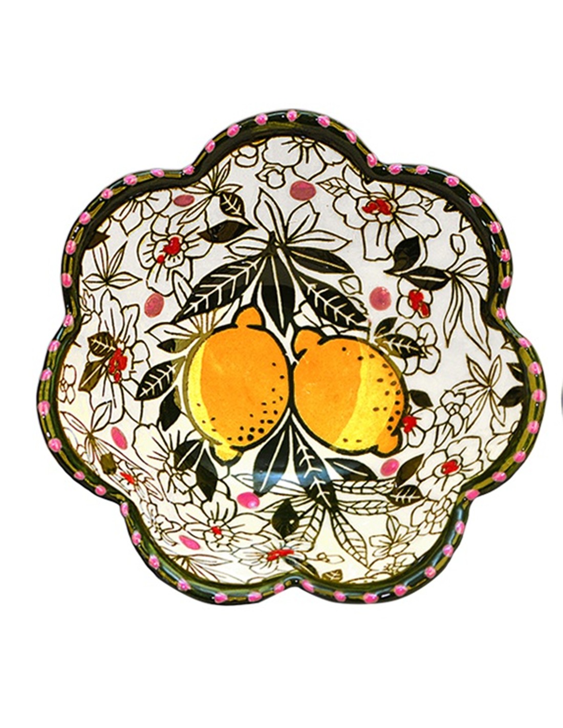 Cuenco Med Trevol 14 X 5 cm Limones. Pintado a mano.Fabricado a mano. Menaje de Mesa. Menaje de Cocina. Accesorios de mesa y cocina. Decoración de Mesa. Decoración de cocina. Artículos de Regalo de Cerámica. Artículos de souvenirs. Artículos artesanales.