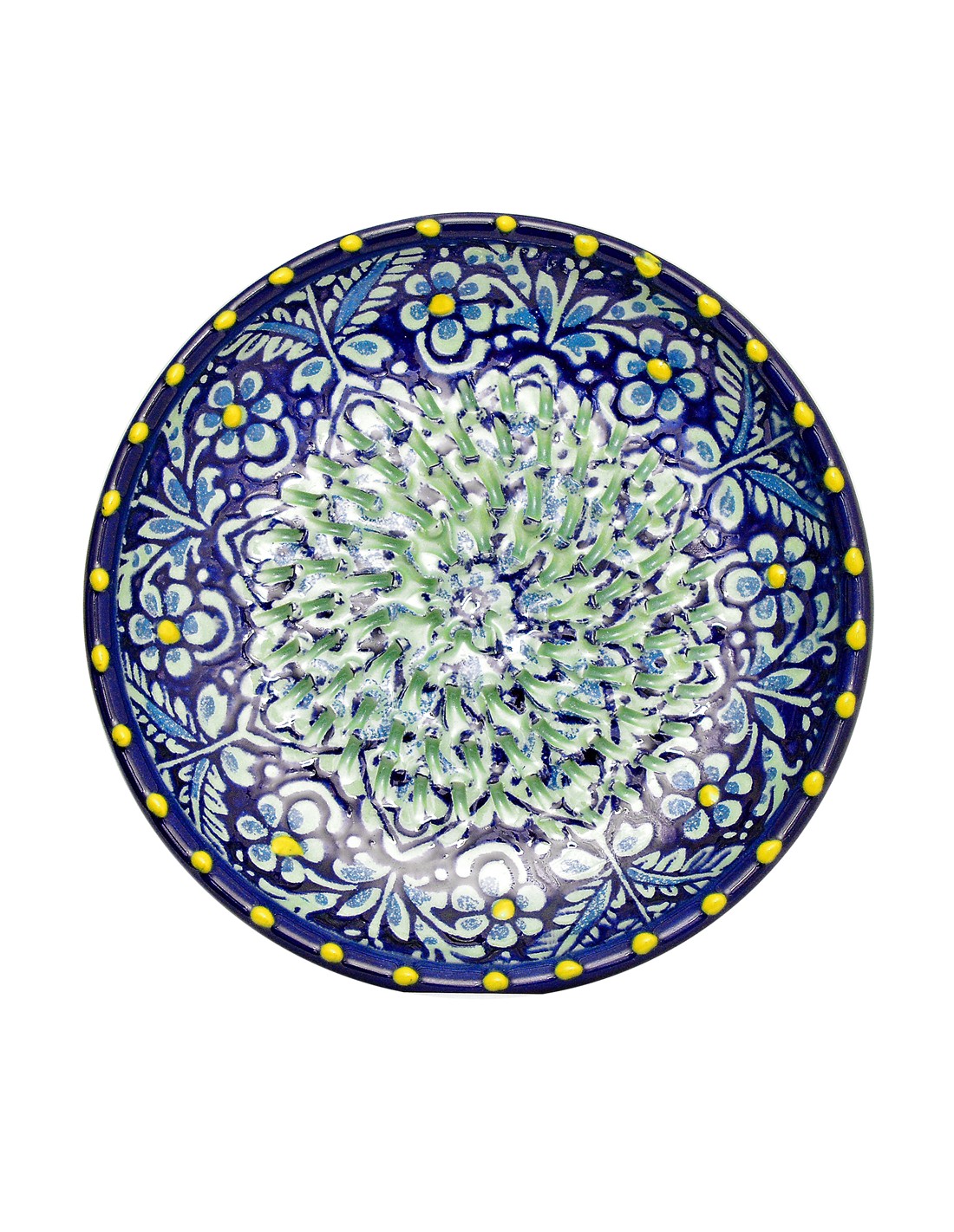 Nuestro Rascaajos-rallador de cocina es un artículo de menaje de cocina realizado artesanalmente con barro, pintado a mano y posteriormente esmaltado para su cocción.